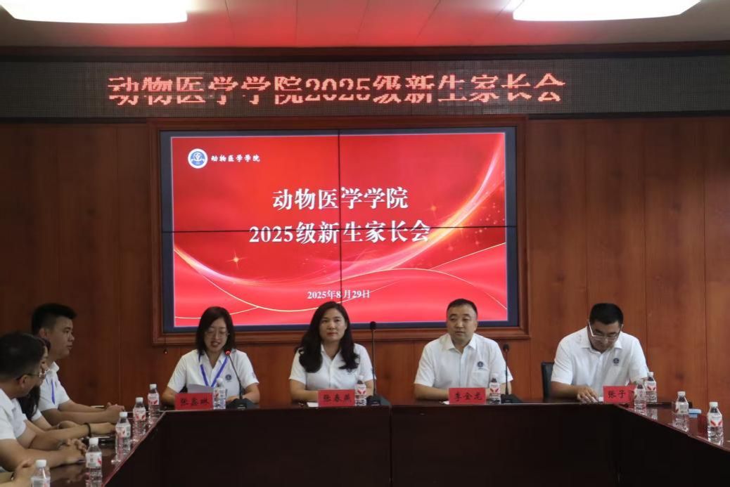 8月29日下午,学院在临床楼215会议室召开2025级新生家长会。学院党委书记张春燕、院长李金龙、党委副书记张鑫琳、副院长张子威,新生班主任,辅导员及新生家长参加会议。会议由张鑫琳主持。会上,与会家长观看了学院宣传片《仁心为医 稼穑生辉》和《携手护航,共同成长——新生家长心理赋能三部曲》公益微课。张春燕代表学院对各位家长表示热烈欢迎,对家长的信任与托付表示衷心感谢,并希望家校协同,共同做学生思想的引领者、生活的守护者、成长的见证者。李金龙系统介绍了学院发展历程、学科优势特色与人才培养体系,深刻阐释了动物医学的时代内涵与发展前景。张鑫琳围绕学生工作体系及学生管理相关规定作详细说明。张子威重点讲解科研平台与本科生创新能力培养路径。互动环节,学院领导就家长关切的专业学习、就业方向、生活服务等问题逐一耐心解答,现场气氛融洽、交流充分。会后,家长们在辅导员带领下参观学院文化墙,进一步了解学院历史与育人成果。