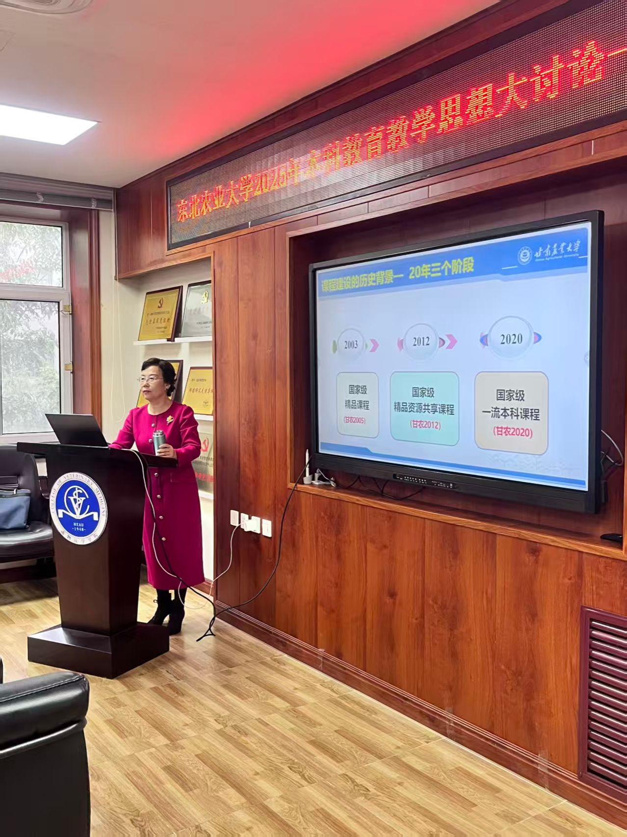 会议由乔薪瑗主持。她首先向莅临现场的各位领导、专家及深耕教学一线的老师们,表示热烈的欢迎和感谢!她指出,课程建设和教材建设是人才培养的核心环节,优质的课程体系能精准对接新农科对复合型、创新型人才的能力需求,而高水平教材则是传递前沿农业科技与绿色发展理念的重要载体,二者需协同发力,才能为培养高素质复合型人才筑牢根基。
