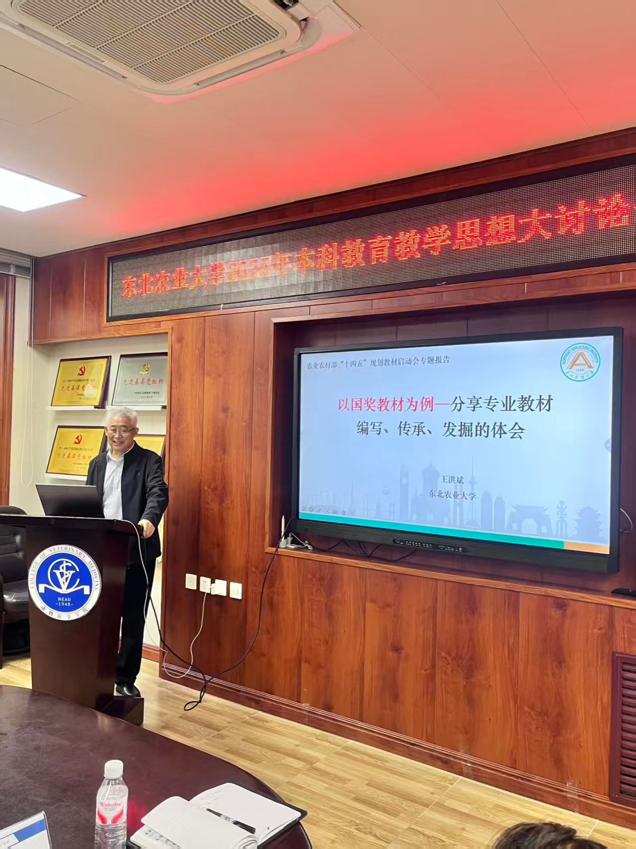 我校动物医学学院王洪斌教授就《专业认证及专业教材编写、传承与发掘》作专题辅导。他强调教材是教学质量的重要保障,既要传承学科核心知识,也要结合新农科发展需求,发掘行业前沿内容,让教材真正成为连接理论与实践、传承与创新的桥梁,引发了在场教师对教材建设的深度思考。
