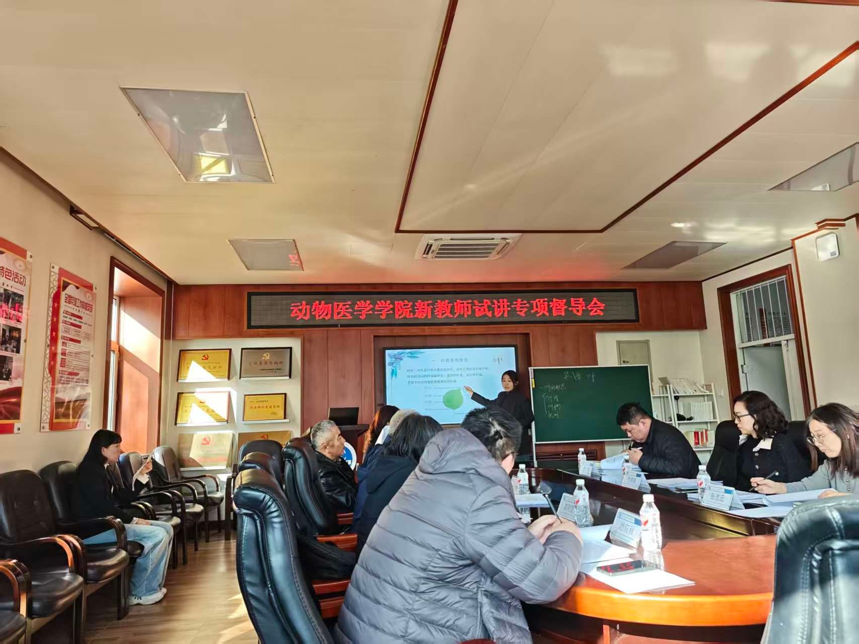 10月22日下午,动物医学学院在临床楼229组织召开新教师试讲专项督导会。学校督学于泽源,校级督导孟光、崔丽莹,高教研究与教学质量评估中心副主任刘杨、徐荻秋,学院副院长乔薪瑗、专业负责人高翔和张志云参会,对新教师的教学能力与课堂表现进行专业指导与评估。