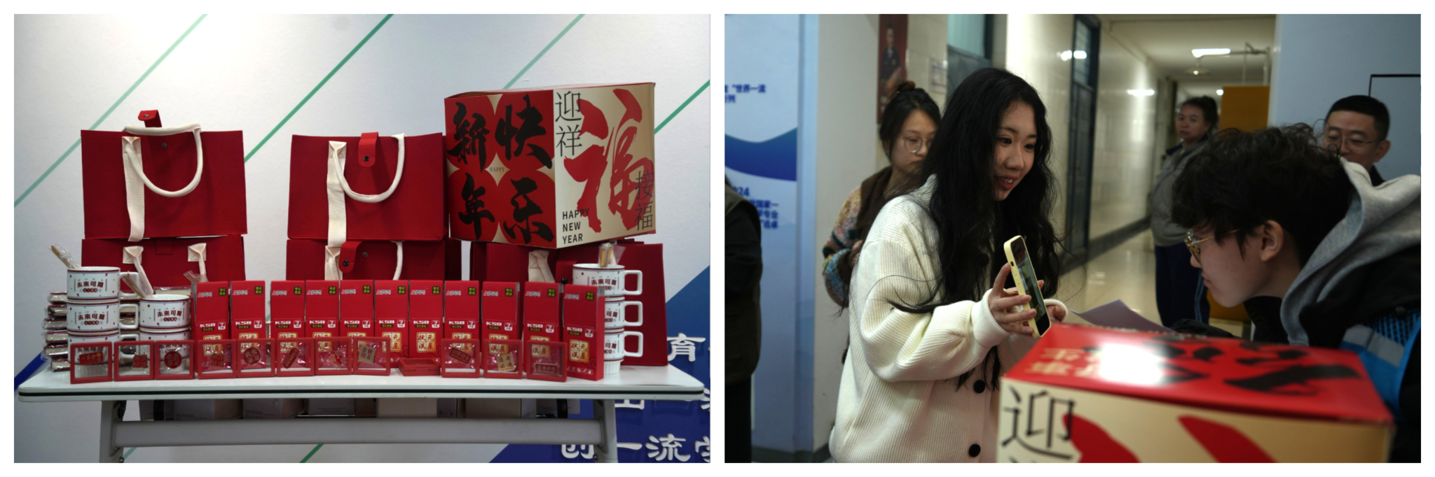 本次灯谜由学院师生亲手书写,悬挂于灯笼之下,形式别致、内容多样。谜题紧扣动物医学专业特色,结合校园生活实际,同时涵盖汉字猜谜、成语典故、民俗常识等传统元素,充分彰显“文化+专业”的融合育人理念。猜中谜底者纷纷前往兑奖区领取精美小礼品,欢声笑语不断,现场洋溢着浓厚的节日气氛。