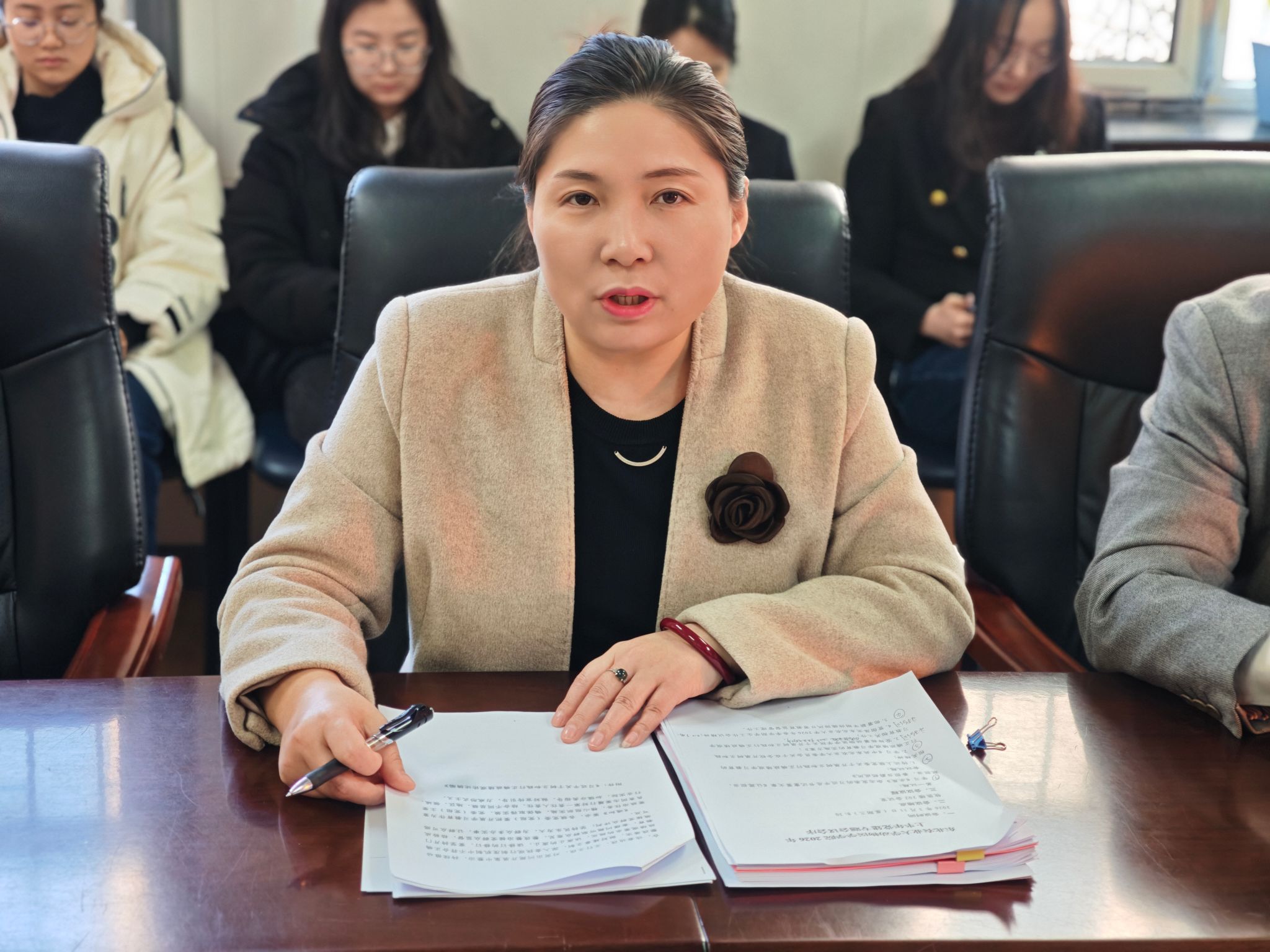 张鑫琳传达了学校2026年春季学期学生工作会议精神,同时重点部署了研究生复试调剂、拓宽就业渠道、春季招聘会等近期学生就业工作。