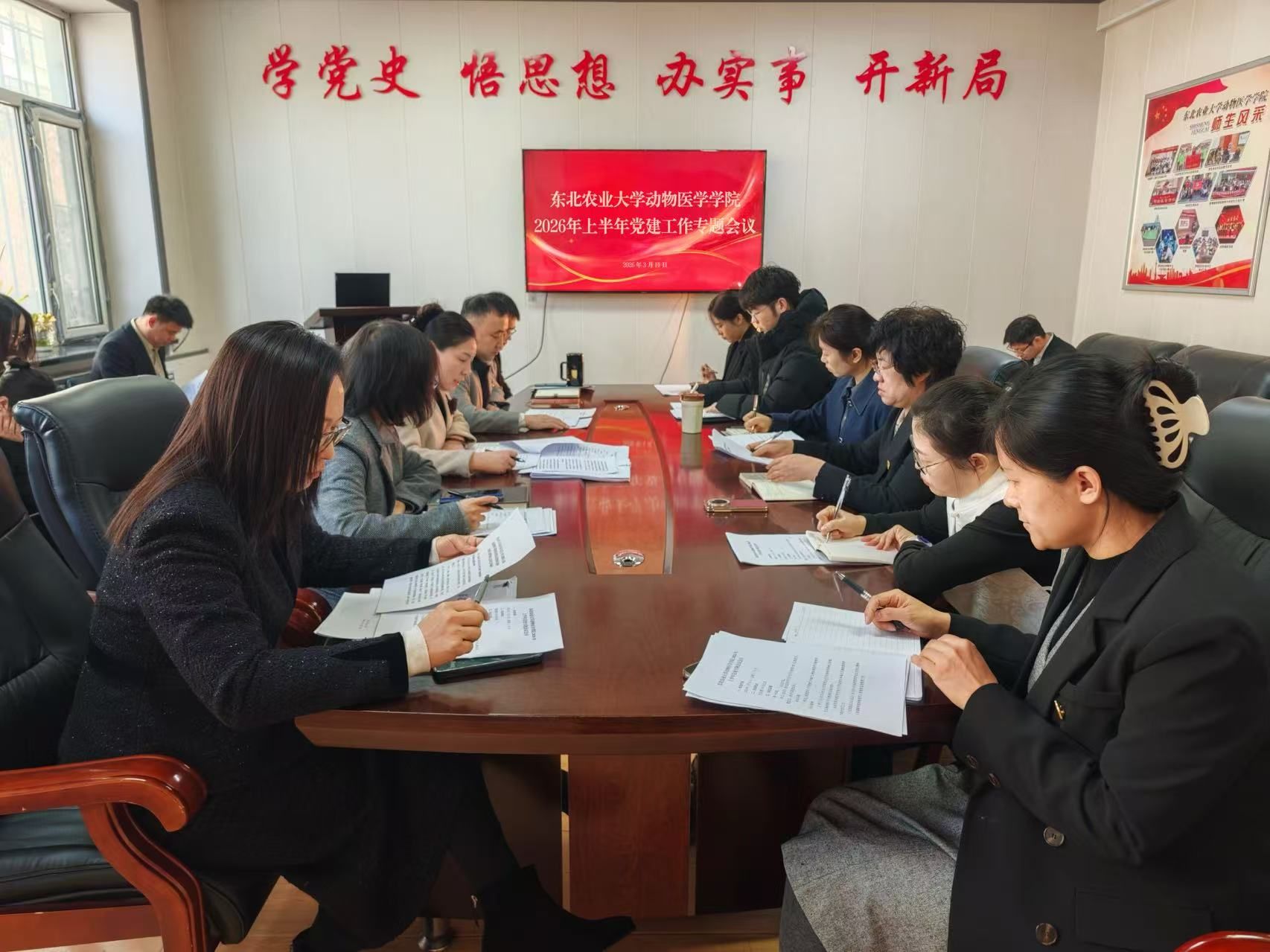 3月11日上午,动物医学学院召开2026年上半年党建工作专题会议,全面启动部署学院树立和践行正确政绩观学习教育工作,传达学校2026年春季学期学生工作会议精神,部署新学期师德师风建设重点任务。学院领导班子成员、党委委员及全体党支部书记参加会议。会议由张春燕主持。